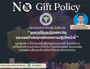 ประกาศเจตนารมณ์เป็นหน่วยงานที่เจ้าหน้าที่ของรัฐทุกคนไม่รับของขวัญ และของกำนัลทุกชนิดจากการปฏิบัติหน้าที่ (No Gift Policy) ของปีงบประมาณ พ.ศ. 2569